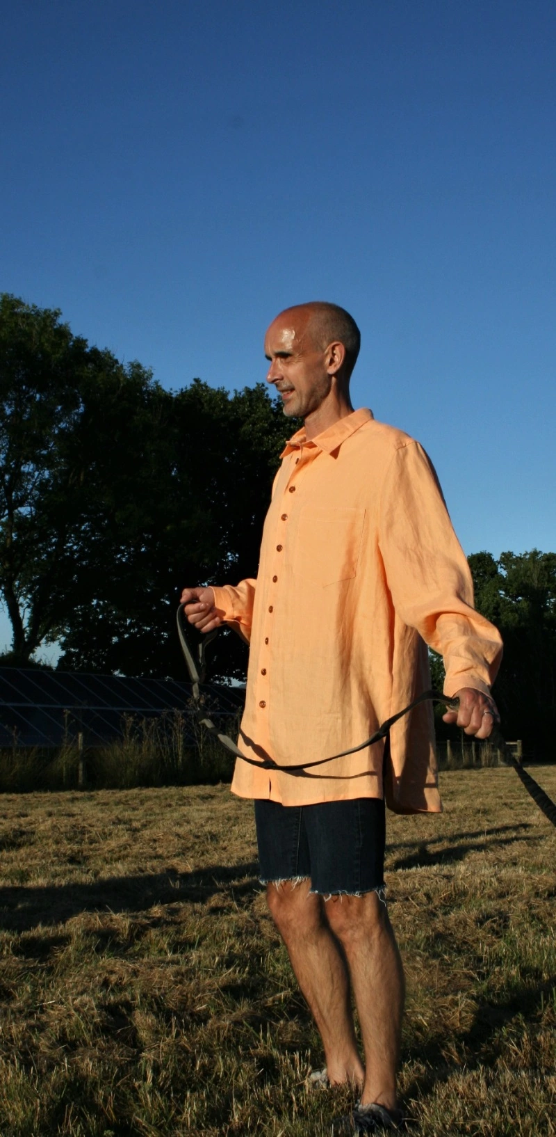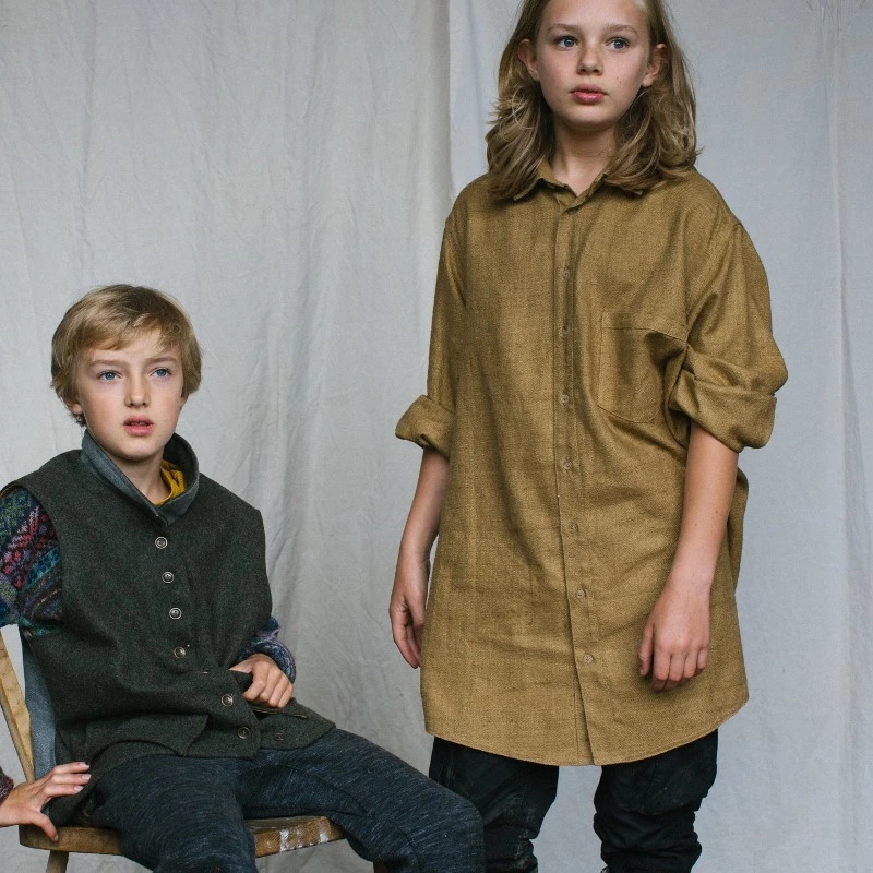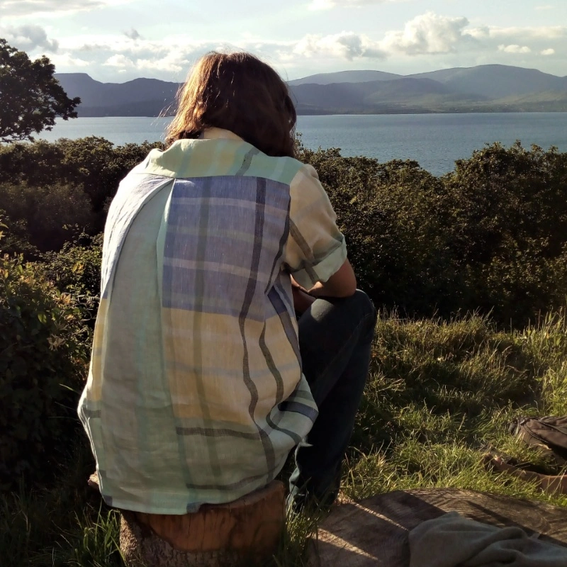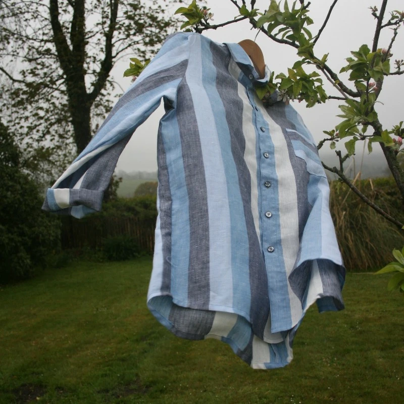 They are available as pull-on or fully opening (button-through). We usually make these shirts in Irish linen, often using sample lengths with a variety of checks and stripes.