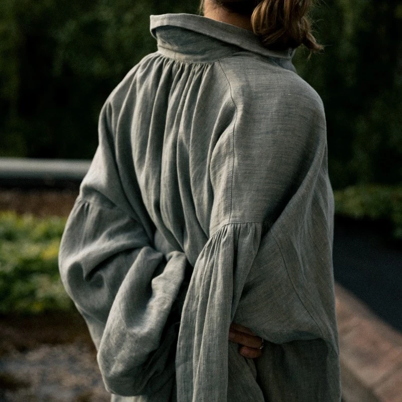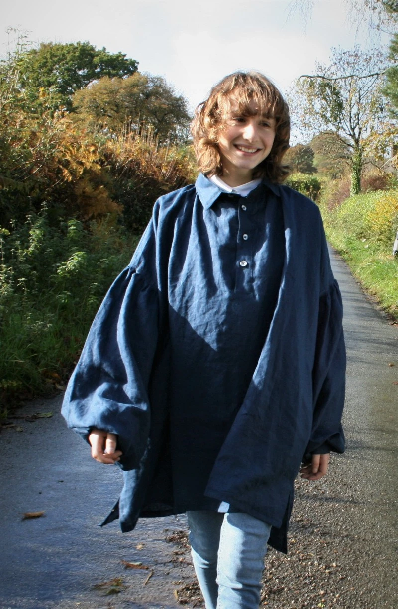 The style is intended to be oversized, but please get in touch if you’re worried that it will drown you, and we’ll make you a smaller one.
