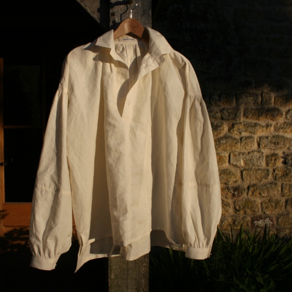 Shirt whose design was inspired by the costumes of Little Women, but Ross Poldark or Captain Jack Sparrow would also appreciate it. Flamboyant pull-on shirt gathered at the collar, shoulders and cuffs. Made from cream-coloured Irish linen tumble-washed for softness. Perfect under a casual waistcoat or over a T-shirt or jumper.