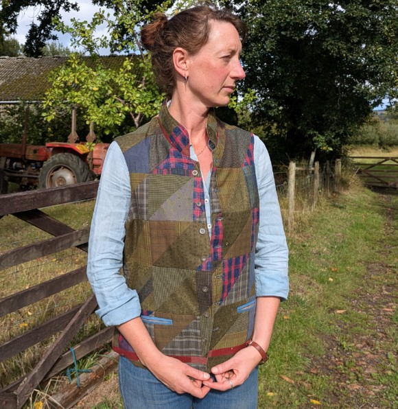 Casual patchwork waistcoat in earthy tones